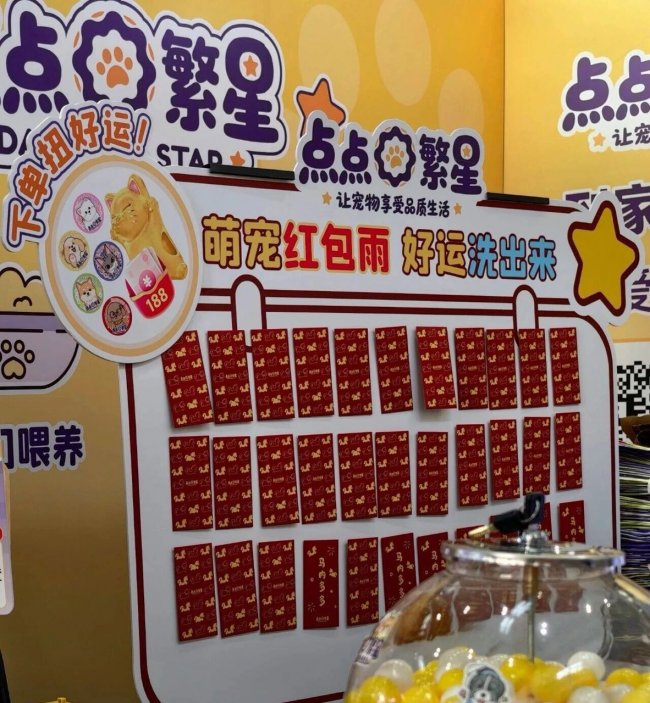 展会现场,点点繁星的互动玩法环环相扣,扭蛋机里还藏着一枚价值1800元的黄金“重磅彩蛋”。扫码领礼的队伍排成了“贪吃蛇”,造型吸睛的显眼包成了宠物主们呼朋引伴的“社交货币”,下单抽奖时现金红包与黄金饰品接连引爆欢呼,现场气氛被一次次推向高潮。此外,品牌还推出29元上门洗护优惠券,让未能现场下单的观众也能把这份福利带回家。